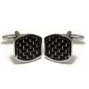 22370Q Link Rhodium Oval Carbon Cuff Links