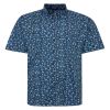 Mens Long Sleeve Stretch All Over Digital Floral Print Shirt With Button Down Collar And Curved Hemline