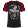 Crew Neck Tee - Raglan Design - Contrasting Sleeves And Neck Line - Eagle And Skull Print On Front.