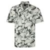 Espionage Short Sleeve Cuban Collar All Over Leaf Print Shirt. Crafted from 100% viscose, this shirt features a stylish chest pocket, a box pleat at the center back, and practical side splits at the hemline for added comfort and breathability. Perfect for casual outings or relaxed gatherings, this versatile piece combines fashion with functionality, ensuring you stay cool and stylish all day long