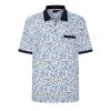Espionage All Over Bird Print Polo Shirt, designed for both style and comfort. Crafted from 100% cotton, this polo features a unique bird print that adds a touch of flair to your wardrobe. The stand self-fabric collar, along with a classic 3 button placket and a convenient chest pocket, ensures a polished yet relaxed look suitable for any occasion. Elevate your casual attire with this versatile and eye-catching piece