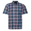 Espionage Short Sleeve Oxford Weave Yarn Dyed Check Shirt, designed for both style and comfort. This shirt features a button-down collar and a matched chest pocket, offering a polished look perfect for any occasion. The box pleat at the back enhances mobility, while the curved hemline adds a modern touch. Made from a blend of 50% cotton and 50% polyester, this shirt is not only breathable but also durable, making it a versatile addition to your wardrobe