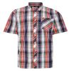 Espionage Short Sleeve Check Shirt, designed for both comfort and style. This shirt features a classic button-down collar, a practical chest pocket, and a box pleat to the center back for a refined silhouette. The side splits at the hemline provide ease of movement, while the V-shaped insert at the cuff adds a unique touch. Made from a durable blend of 50% cotton and 50% polyester, this shirt is perfect for casual outings or relaxed work environments