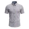 The DG's Drifter geometric print stretch Shirt is a versatile addition to any wardrobe, designed with comfort and style in mind. Crafted from high-quality cotton, this shirt features a button down collar and short sleeves, making it perfect for both casual outings and more polished looks. With its regular fit, it provides a flattering silhouette that ensures ease of movement due to the stretch fabric, making it an ideal choice for warm weather or layering.