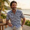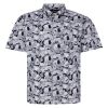 Espionage Leaf Print Shirt, designed for the modern man who appreciates style and comfort. This short sleeve button-down collar shirt features a contemporary leaf print, perfect for casual outings or relaxed office settings. With its curved hemline, box pleat at the center back, and a convenient chest pocket, this shirt combines functionality with a touch of sophistication. Crafted from 100% cotton, it promises breathability and comfort throughout the day. Elevate your wardrobe with this versatile piece