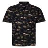 Espionage Prairie Print Shirt, a stylish addition to any man's wardrobe. This short sleeve Cuban collar shirt features an all-over prairie design print, showcasing a unique aesthetic that stands out. Designed with practicality in mind, it includes a chest pocket, a box pleat at the back for added comfort, and a straight hemline with side splits for a relaxed fit. Made from a high-quality blend of 52% cotton and 48% viscose, this shirt promises both breathability and durability, making it a perfect choice for both casual outings and laid-back occasions