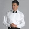 This men's white ribbed pique dress shirt is perfect for evening black tie and formal events. Featuring long sleeves, double cuffs and a concealed button fastening, this crisp white tuxedo shirt is designed with a stylish ribbed piqué panel in the front. Double TWO tailors its shirts using the finest fabrics so you can rely on the historic British company for the highest-quality eveningwear. Pair with a black bow tie to complement the refined finish. Also available in wing collar