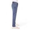 This jean has rich light blue tones and washed to keep its mid base. With light hand sanding which adds a subtle faded contrast to these areas, completed with understated whiskers/creases. Stitching to compliment the denim shade