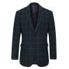 Heaton suit jacket in navy with purple / corn overcheck wool blend fabric