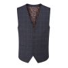 Thoresby suit waistcoat in navy / grey windowpane check stretch fabric.
