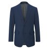 Features include waist flap pockets, notch lapels, tortoise shell gloss buttons; geometric print lining with twin side vents.