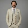 I’m Caspian, a single-breasted suit jacket in a silhouette-defining tailored fit. My holiday print lining and stone linen-look cloth wouldn’t look out of place on the French Riviera. I’m happy to holiday elsewhere though. Especially if a wedding’s on the cards