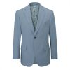 I’m Beckett, a single-breasted suit jacket cut from a pale blue cloth. Crafted in a tailored fit, I come with two flap pockets, horn-effect buttons and a floral printed lining. My fresh and airy style will stand out from the crowd – come rain or shine