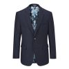 Features include flap pockets, floral print lining, horn effect buttons, pull out hankie with twin side vents.