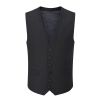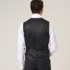 Methley single breasted six button fastening suit waistcoat in semi-plain black stretch fabric.