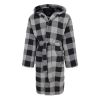 Mens Check Bonded Sherpa Fleece Shawl Collar Gown With Hood And Two Lower Patch Pockets.