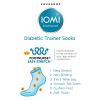These soft touch, cotton blend socks have a looser knit than conventional socks, allowing them to be non-binding, stretching without huge amounts of added elastic, and have extra-wide ankles. A cushioned half-foot and Smooth Linked Toe seams protect against unwanted abrasion. Iomi FootNurse Cushioned Foot Diabetic Trainer Socks include Coolmax to keep skin cooler, and Sanitized Actifresh for bacteria resistance and longer lasting foot freshness.